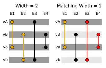 - The matching width of H, denoted mw(H), is the maximum, over all matchings M in H, of the minimum size of a subset of E that pins M.[3]