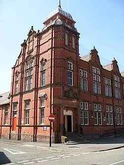 Leigh college was founded as Leigh Technical School in 1894, and was opened on 26 September by Frederick Stanley, 16th Earl of Derby.[4] The new red-brick building, built in the English Renaissance style, cost £23,000 and also included a public library and a "chemical theatre and laboratory" on the upper floor.[5] It was granted technical college status in 1926.[4]