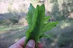| Cichorium endivia (C. pumilum) | Dwarf chicory | (Arabic: ʻilt; ʻilk; ʻilsh; hindeba; sikōria) Young tender leaves chopped and fried with onions and garlic, and a pinch of salt. Cooked with lentils. Eaten fresh as a salad with beets and lemon juice.[54][55] C. endivia (syn. C. pumilum) is the only chicory native to the country,[56] and is numbered among the bitter herbs that can be eaten by Israel during the Passover ritual.[57] The larger the leaves grow, the bitterer they become. Best when picked in the early Spring before the plant blossoms. The Arab population of Galilee have traditionally used it in stuffed foods. Roasted chicory roots have been used as a substitute for coffee.[58] |