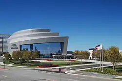Principal photography for "Wildfire" transpired at the Cobb Energy Performing Arts Centre, which was depicted as the Centers for Disease Control and Prevention. Producers of the show were not allowed to photograph the interior of the actual buildings as part of the Centers for Disease Control and Prevention as a point of reference due to its high security.[5] As opposed to the successive episode, where filming mostly took place inside of the Cobb Energy Performing Arts Centre, production for "Wildfire" occurred outside of the building.[6] Darabont conceived the idea of exploring into the Centers for Disease Control and Prevention, as its headquarters are in close proximity to Atlanta.[5] Although the location was not featured in the comics of the same name, Kirkman was content with the idea, and stated that Darabont was looking to diverge from the comics in lieu of a literal interpretation. "Frank has always maintained that the comic book is a path but we’re not stuck on it. If a story idea comes up, we’ll leave the path for an episode or two, but we’ll always come back to it," he said.[7]