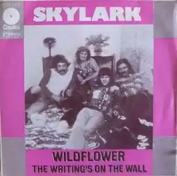 Doug Edwards was a member of Skylark, and Dave Richardson was a friend of band member and organizer David Foster. Edwards composed "Wildflower" after reading a poem by Richardson; the song was included on the band's demo tape. Barry De Vorzon, by 1972 an established music business name, heard the demo tape and was convinced that the song would be a big hit. After the demo was rejected by several studios, an executive at Capitol Records signed the band, and the song—with Donny Gerrard doing the vocal—was included on their eponymous first album.[1] The initial single released from the album was not successful. Rosalie Trombley, a music director at CKLW, a Canadian radio station in Windsor, Ontario, played "Wildflower", at that time an album cut, repeatedly for three months in an effort to satisfy the Canadian government's requirements for Canadian content.[1][2] During that period, it was the only radio station in North America to have the song on its playlist.[2] Capitol decided to release it in neighboring Detroit as a regional release, where it became a huge soul hit before breaking out nationally and crossing over to the pop charts. Eventually "Wildflower" spent 21 weeks on the Billboard pop chart.[2] The song proved to be extremely popular in Canada as well; it ultimately peaked at #10 on the RPM Top Singles chart,[3] and #1 on the Adult Contemporary chart.[4] Total sales of the single exceeded one million copies, and it was included on their second album as well, at the request of Capitol Records executives who sought to capitalize on the song's success.[5] Ultimately, it was their only single to chart in the United States.