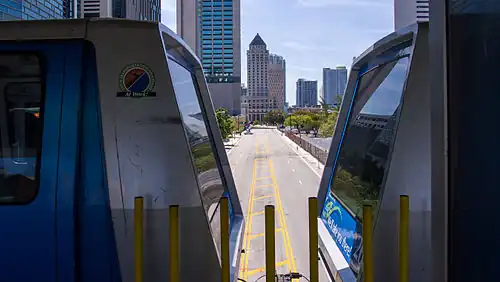 ![]() View between two waiting Metromover cars at the station of Dade County Courthouse and government buildings | ||||||||||||||||||||