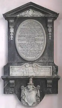 - ^ See armorials depicted in Westleigh Church, which differ in tincture and crest from the Lanarkshire family of Cleland [2]