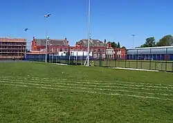 Behind the academic buildings, and backing onto Princess Road are the sports facilities. There is a sports hall with full cricket nets, gymnasium and changing rooms as well as a more modern pavilion/changing room suite. A full-size AstroTurf pitch with adjacent netball courts was built in 2002–2003. In winter the playing fields are used for hockey, rugby and soccer pitches, and in summer for rounders and cricket pitches. Badminton, basketball and tennis are also played. Throughout the year there are regular inter-school and inter-House matches in all the main sports. The Corps also has an indoor rifle range on the campus.