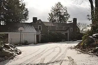 Windmill Hill is located in a rural setting of southeastern Dublin, on the south side of Windmill Hill Road. It sits on about 4 acres (1.6 ha) of land, which slope steeply away from the road to the southeast, providing views of Mount Monadnock and the hills of Peterborough. It is a 1+1⁄2-story wood-frame structure built in a U shape with gabled roofs and shingled exterior. A rubblestone terrace wall provides a level grassy area behind the house. Its windows are six-over-six sash throughout, and there are gabled dormers piercing the roof of the central section.[2]