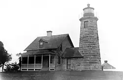 The first lighthouse on this site was privately erected in 1830. In 1858, the Lighthouse Service contracted with the Ellis and O'Neil firm to erect the present octagonal tower, which is connected directly to the keeper's house. Together with the Isle La Motte Light, it forms a rough line marking the channel through the center of the lake. It remained in service until 1931, when a steel tower was erected on the property with an automated acetylene light on top. The keeper's house was transferred to the customs service for use in battling smuggling during Prohibition. The tower and house were eventually sold to a private individual.