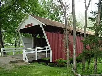 The 76-acre (31 ha) park contains the Cutler–Donahue Covered Bridge which was used in the novel The Bridges of Madison County and its film adaptation.[2][3] Park facilities include shelters, picnic areas, restrooms, a sand-pit volleyball area, a campground, a hedge maze, and parking.[2]