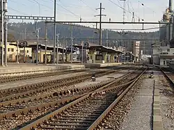 Winterthur Grüze railway station (German: Bahnhof Winterthur Grüze) is a railway station that serves Grüze, an industrial zone in district number 2 of the city of Winterthur in the canton of Zurich, Switzerland.[2][3] It is one of ten railway stations in the city of Winterthur (fare zone 120 of ZVV),[1] the others being: Oberwinterthur, Reutlingen, Sennhof-Kyburg, Winterthur, Winterthur Hegi, Winterthur Seen, Winterthur Töss, Winterthur Wallrüti, and Winterthur Wülflingen.