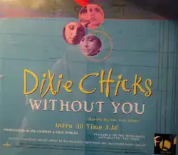 "Without You" is a song written by Eric Silver and Natalie Maines, and recorded by American country music group Dixie Chicks. It was released in August 2000 as the fifth single from their album Fly. In January 2001, it hit number one on the U.S. country singles chart.[1] It also reached number 31 on the Billboard Hot 100.