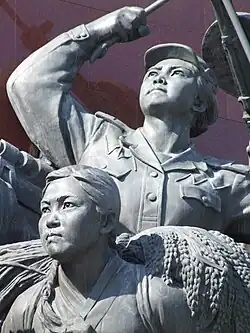 Women's increased freedoms in the public realm copied the Marxist–Leninist tradition that promoted women's entry into the socialist workforce as paid workers. However, the North Korean regime still maintained the traditional Confucian beliefs that extolled the centrality of family and praised revolutionary motherhood. This was articulated in a 1949 text on DPRK law crafted by the People's Committee in Kangwon Province described how "marriage and family are protected under the state."[4] In fact, the eradication of the traditional family, the mild discouragement of divorce, and the assault on feudal practices such as concubinage and arranged marriages paved the way for the modern nuclear family.[6] The propaganda and images spurred by the DPRK continued to praise revolutionary motherhood and represent women who embraced the traditional Korean virtues of feminine purity, self-sacrifice, and morality.[6]