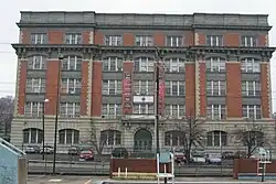Woodward was one of the first public schools in the country.[5] The land for the original school was donated by William Woodward and his wife Abigail Cutter in 1826 to provide free education for poor children who could not afford private schooling.[6] The Woodward Free Grammar School opened on the site in 1831 and was the first free public school in the city. The original two-story school building was replaced in 1855. On the day after his election, President Elect William Howard Taft, who graduated from Woodward High School in 1874, laid the cornerstone of a third building, which opened to students in 1910 (39°6′38″N 84°30′36″W / 39.11056°N 84.51000°W).[5][7] The third building was designed in the Renaissance Revival style by Cincinnati architect Gustave W. Drach, who was a Woodward alum.[8][9]