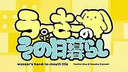 Wooser's Hand-to-Mouth Life (うーさーのその日暮らし, Ūsā no Sono-hi-gurashi) is a Japanese short CG anime series by Sanzigen, based on a short journal column created by Supercell member Yoshiki Usa and illustrator Tomoko Fujinoki. The series aired on TV Tokyo between October and December 2012, and was streamed on Nico Nico Douga and Crunchyroll. A second season began airing in January 2014 and ended on March 25, 2014. A third season began airing on July 3, 2015, and ended on September 25, 2015.