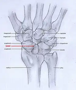- ^ Tischler, Brian T.; Diaz, Luis E.; Murakami, Akira M.; Roemer, Frank W.; Goud, Ajay R.; Arndt, William F.; Guermazi, Ali (2014). "Scapholunate advanced collapse: a pictorial review". Insights into Imaging. 5 (4): 407–417. doi:10.1007/s13244-014-0337-1. ISSN 1869-4101. PMC 4141341. PMID 24891066.