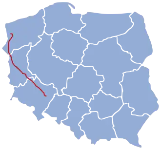 The final stations were originally the today defunct Wrocław Świebodzki railway station German: Breslau-Freiburger Bahnhof) and Szczecin Dworzec Wrocławski (German: Stettin-Breslauer Bahnhof originally under the name of Stettin-Breslau-Freiburger Bahnhof), today part of the Szczecin Port Centralny cargo station.