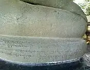 The Wurare inscription (Indonesian: Prasasti Wurare) is an inscription commemorating the coronation of the statue Mahaksobhya in a place called Wurare. The inscription is written in Sanskrit, dated November 21, 1289 CE.[1] The statue is a tribute and a symbol for Kertanegara, king of Singhasari kingdom, which was considered by his descendants to have achieved the degree of Jina (Great Buddha). The inscriptions are written circulary on the pedestal base of the Buddha statue.