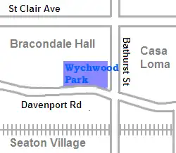 Wychwood Park is a neighbourhood enclave and private community in Toronto, Ontario, Canada.[1] It is located west of Bathurst Street on the north side of Davenport Road, within the larger area of Bracondale Hill. It is considered part of the overall Wychwood official neighbourhood as designated by the City of Toronto.