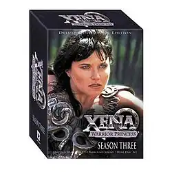 The Third season aired in the United States on the USA Network. The season was released on DVD as a five disc boxed set under the title of Xena: Warrior Princess: Season 3 in February 2004 by Anchor Bay Entertainment.