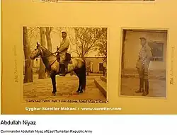 ![]() Abdul Niyaz with his soldiers in Kashgar | |||||||||