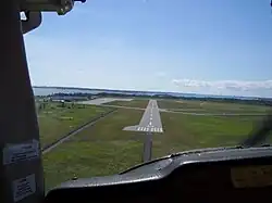 There is an instrument landing system servicing Runway 19, on the frequency 111.3 MHz.[20] Kingston also has a non-directional beacon (NDB) that transmits "YGK" in Morse code on the longwave radio frequency of 263 kHz.[21] YGK was decommissioned on November 30, 2023.
