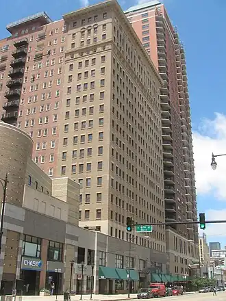 The YMCA Hotel is a historic former hotel located in the Loop community area of Chicago, Illinois. The hotel, which was designed by Robert C. Berlin and James Gamble Rogers, opened in 1916. Originally marketed by YMCA as a cheap residence for young, single men, the hotel began marketing to a wider clientele when the Great Depression created a demand for inexpensive lodging. The hotel's status and customers declined with the surrounding neighborhood, and it closed in 1979; it reopened as an apartment building in 1985.[2] The hotel was added to the National Register of Historic Places on August 30, 1989.[1]