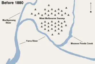 {{cite web}}: CS1 maint: multiple names: authors list (link) - ^ Rivers, wetlands, bays Port Phillip and Westernport Archived 5 June 2013 at the Wayback Machine. Melbourne Water. Retrieved on 2013-07-12.