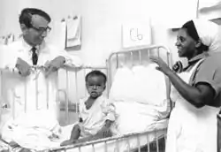 Yngve Larsson was the fifth child of Stockholm vice mayor Yngve Larsson and Elin Larsson (daughter of publisher Karl Otto Bonnier). He graduated from Uppsala University in 1938 and gained his Ph.D. at Karolinska Institute in 1956.[2] From 1964 he worked for Swedish International Development Cooperation Agency in Addis Abeba, Ethiopia, first as a professor and 1965-1970 as director of the Ethio-Swedish Pediatric Clinic (ESPC) at Haile Selassie I University. In parallel, his wife pediatrician Ulla Larsson established the Lideta Maternal and Child Health Center (or Lideta MCH Clinic) nearby with financing from the Swedish branch of Save the Children. In the 1970s Yngve Larsson worked in Linköping, Sweden, in charge of diabetology at Linköping University and initiating national research in the field.[3][4]
