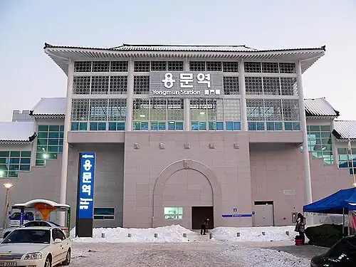 Yongmun station is a station on the Gyeongui–Jungang Line in Gyeonggi-do, South Korea. It was the eastern terminus of the commuter railway, running from Seoul to Yangpyeong County until 2017. Mugunghwa trains also stop at this station.