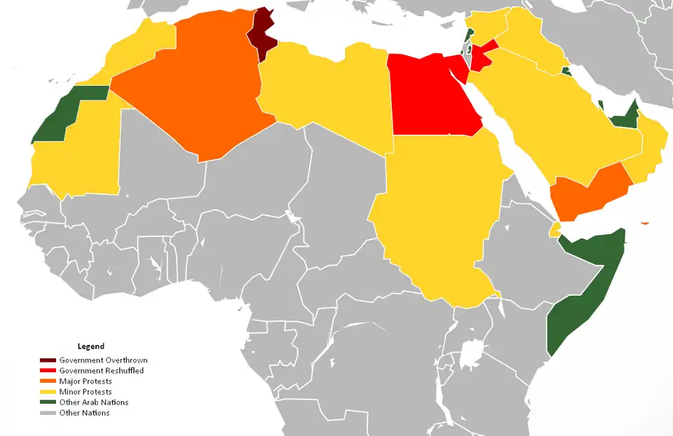 Youth consist of over 32% of the population of the Arab region. The Arab world comprises 22 countries and territories as designated by the Arab League. Youth between the ages of 15 and 24 years old represent over 100 million of the current population.[1] Since youth are such a large portion of the population, they have the ability to create social change or movements by uniting and mobilizing. The Arab Spring is an example of how youth uniting can have a great influence on policy. By mobilizing and accessing the technology of today, they are able to voice their opinions and views in mass numbers across all media platforms. With the sheer numbers of youth getting involved online, young people are able to draw worldwide attention and help to organize the agendas that they value. Yet, "efforts by the region’s youth to forge a more positive future for themselves and coming generations has been subsumed by events, and efforts to forge constructive solutions to the long-standing economic challenges facing the region’s youth have largely been sidelined by more immediate concerns related to security and political stability."[2]