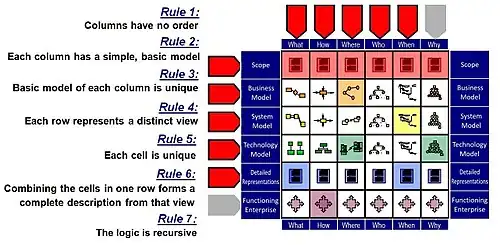 • a two-dimensional schema, used to organize the detailed representations of the enterprise.[10]