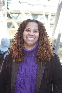Born in Philadelphia, Zeinabu irene Davis gravitated towards arts, "theater and education".[3] With a Catholic school background, Davis studied at Brown University, then later traveled to Kenya and studied there until the government shut down the university after some students had participated in political protest. In Kenya she met Ngũgĩ wa Thiong'o, and learned about the different peoples of Kenya and how they are underrepresented or misrepresented in film.[4] She pursued her first master's degree in 1983 focusing on African studies, later receiving a Master of Fine Arts in film and video production from UCLA in 1989. She has received numerous grants and fellowships from such sources as the Rockefeller Foundation, the American Film Institute and the National Endowment for the Arts.[5] She has taught at many colleges, including Antioch College and Northwestern University, but has more recently moved to teach at UC San Diego, where she currently serves as a Professor of Communication.[1]