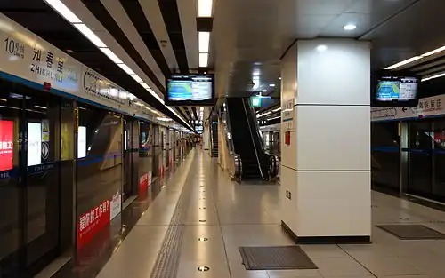 Zhichun Li Station[1] (Chinese: 知春里站; pinyin: Zhīchūnlǐ Zhàn) is a subway station on Line 10 of the Beijing Subway. It is located between Zhichun Lu (to the east) and Haidian Huangzhuang (to the west), under Zhichun Road. This is an underground station.