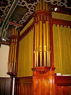 Zion’s first organ, a Bohler, was installed in 1889 at a cost of $2,325. Then in 1928, the Möller organ still serving the congregation today was installed for $10,500. The organ was built at the M.P. Moller Pipe Organ Company in Hagerstown. In 1963 the organ was rebuilt and 1,544 new pipes were added. Previous renovations included preparations in the console for further tonal enhancements. Improvements to the Möller organ are ongoing in an effort to keep the organ state-of-the-art. Zion's organ now has a total of 2,217 pipes, ranging in size from smaller than a pencil to 16 feet (4.9 m) long.[11]