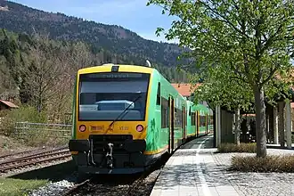 The Zwiesel–Bodenmais railway was the last railway line to be built in Lower Bavaria, a province of the state of Bavaria in southeast Germany. Nowadays it is route number 907 in the timetable. Construction started in 1921 as part of a move to support this depressed area and it was taken into service on 3 September 1928. The 14.3 km long stub line connects to the Bavarian Forest railway from Plattling to Eisenstein opened on 16 September 1877 and also to the line to Grafenau, Bavaria (KBS 906), opened on 1 September 1890.